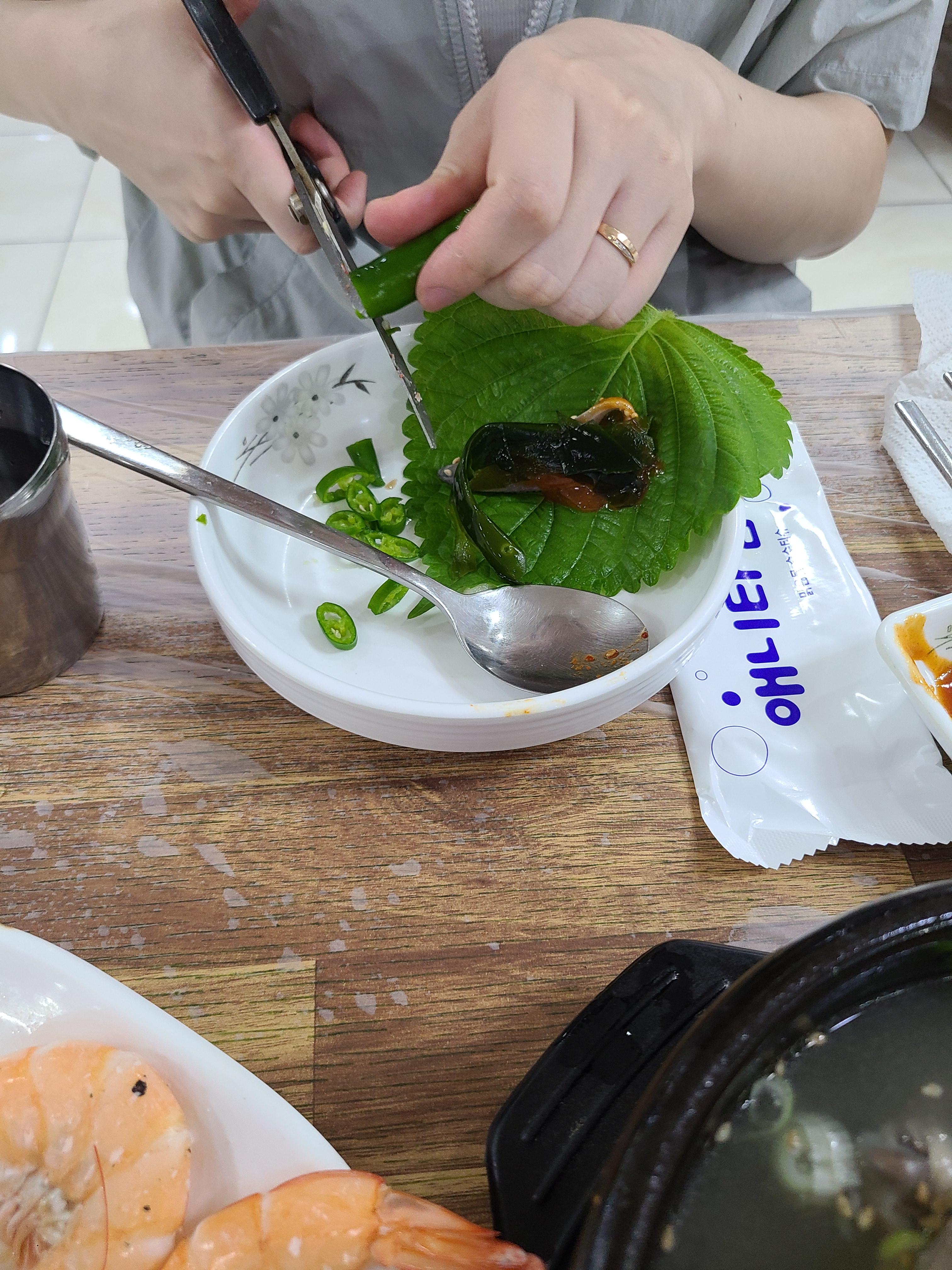 전 전어회에 매운고추를 싸먹는 걸