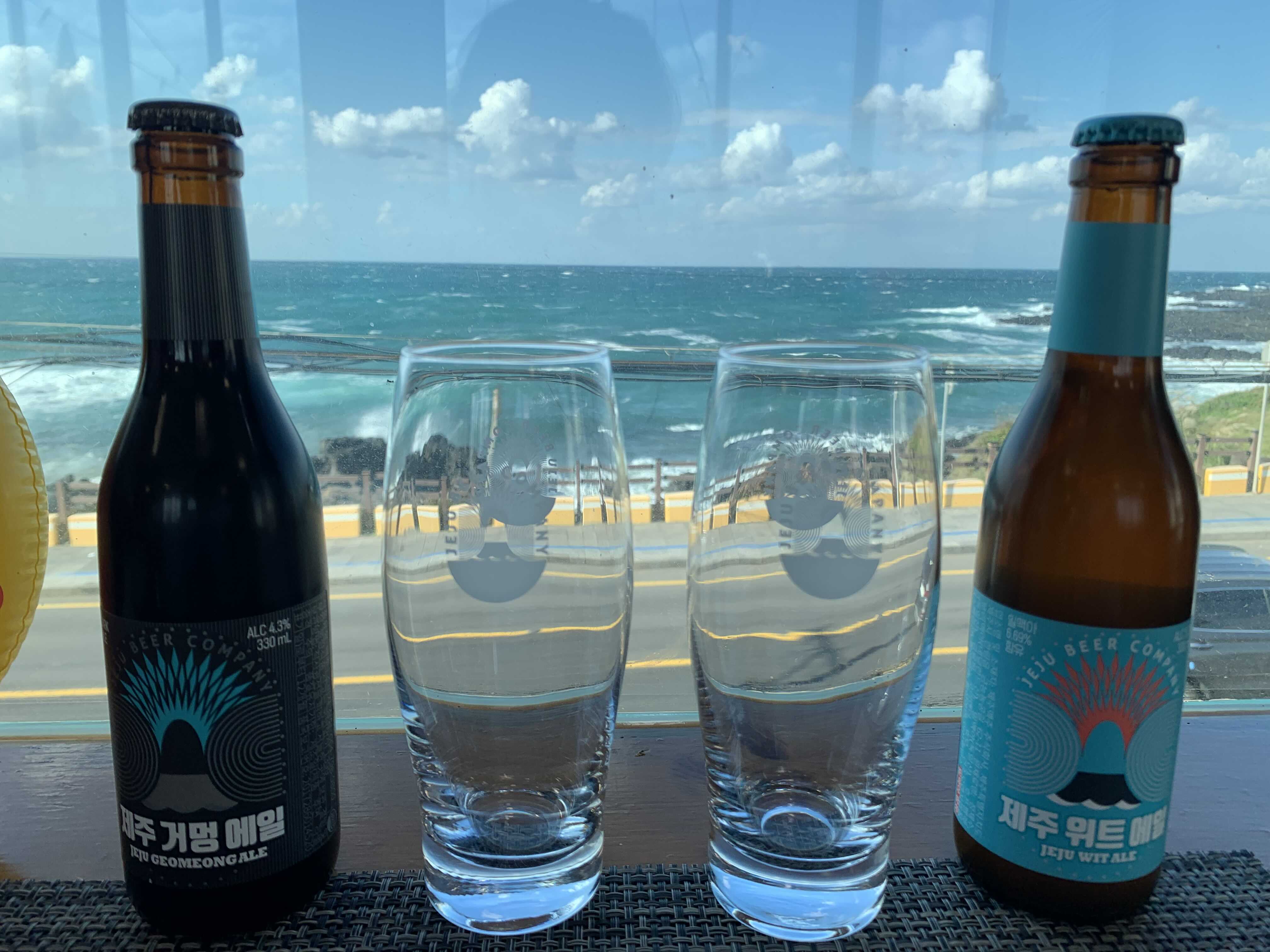 제주맥주 2병을 주문했더니 제주에일전용 맥주잔을 주더라구요ㅎ 좋댜