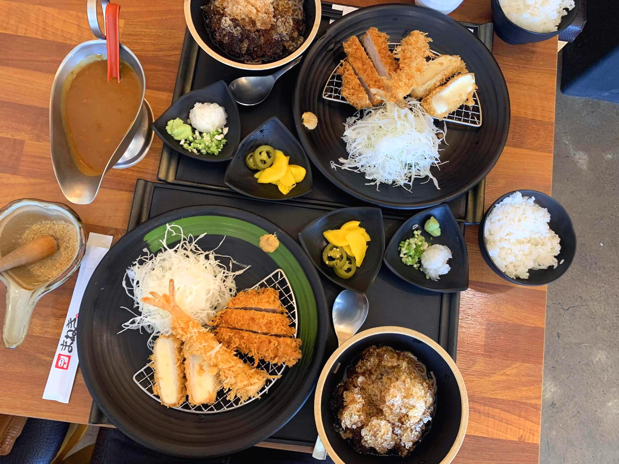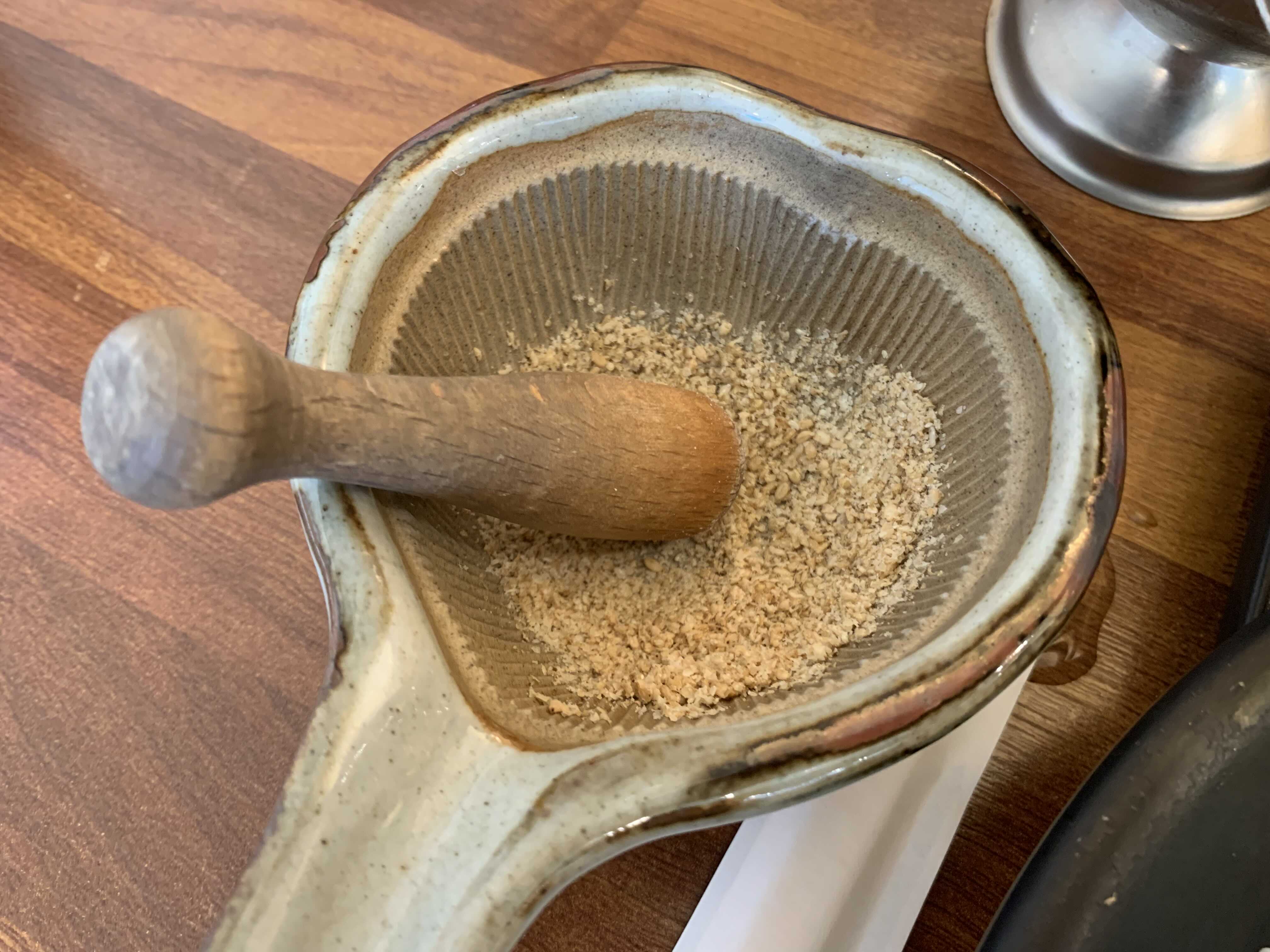 특이하게 음식나오는동안 깨를 잘게 부셔서 아까 테이블에 있던 돈카츠 소스를 기호에 맞게 넣으시면 됩니당